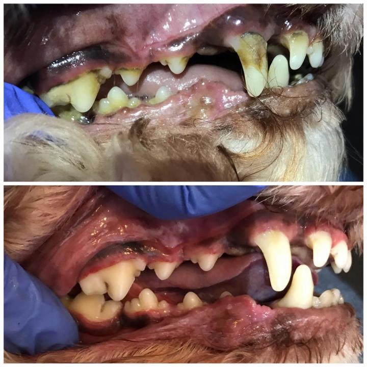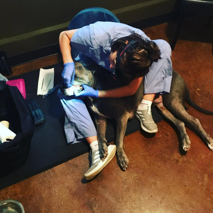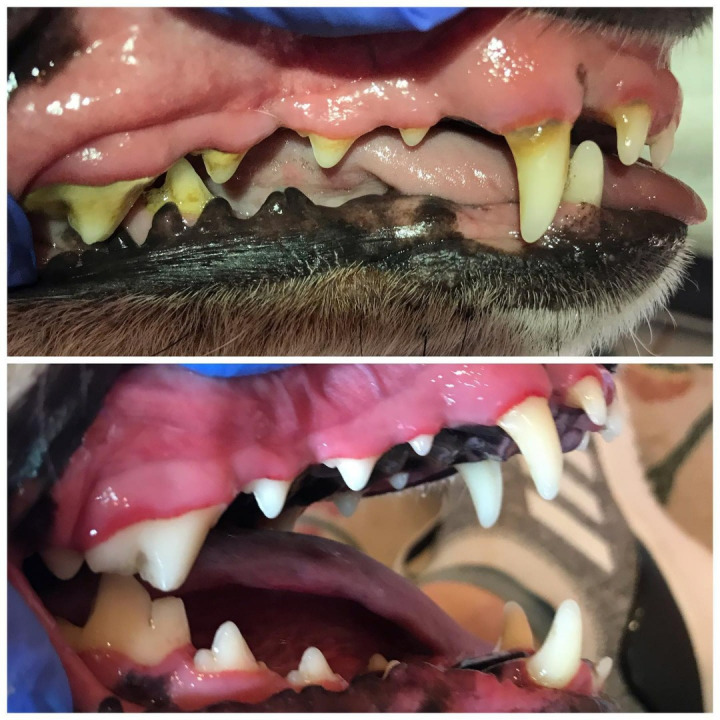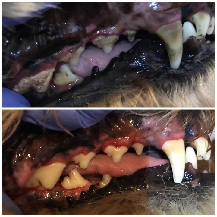 Following veterinarian approval, teeth cleaning is performed using traditional hand scalers like you would see in your dental office. Pumice powder is applied with a toothbrush for polishing surfaces and removing stain. Chlorhexidine rinse is used to kill and prevent bacteria growth. Each appointment takes between 30 and 60 minutes, depending on the amount of build up.