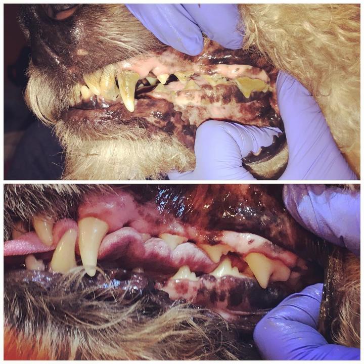 Following veterinarian approval, teeth cleaning is performed using traditional hand scalers like you would see in your dental office. Pumice powder is applied with a toothbrush for polishing surfaces and removing stain. Chlorhexidine rinse is used to kill and prevent bacteria growth. Each appointment takes between 30 and 60 minutes, depending on the amount of build up.